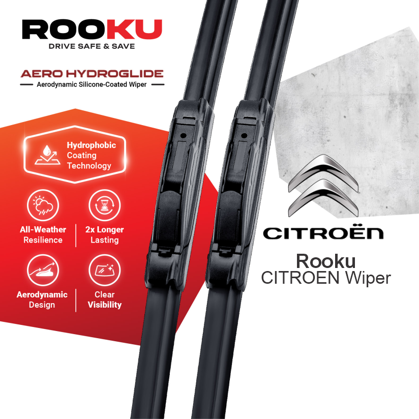Rooku Wiper - CITROEN Aerodynamic Silicone-Coated Front Wiper Set