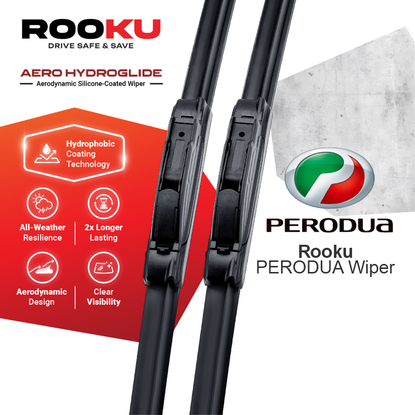 Rooku Wiper - PERODUA Aerodynamic Silicone-Coated Front Wiper Set